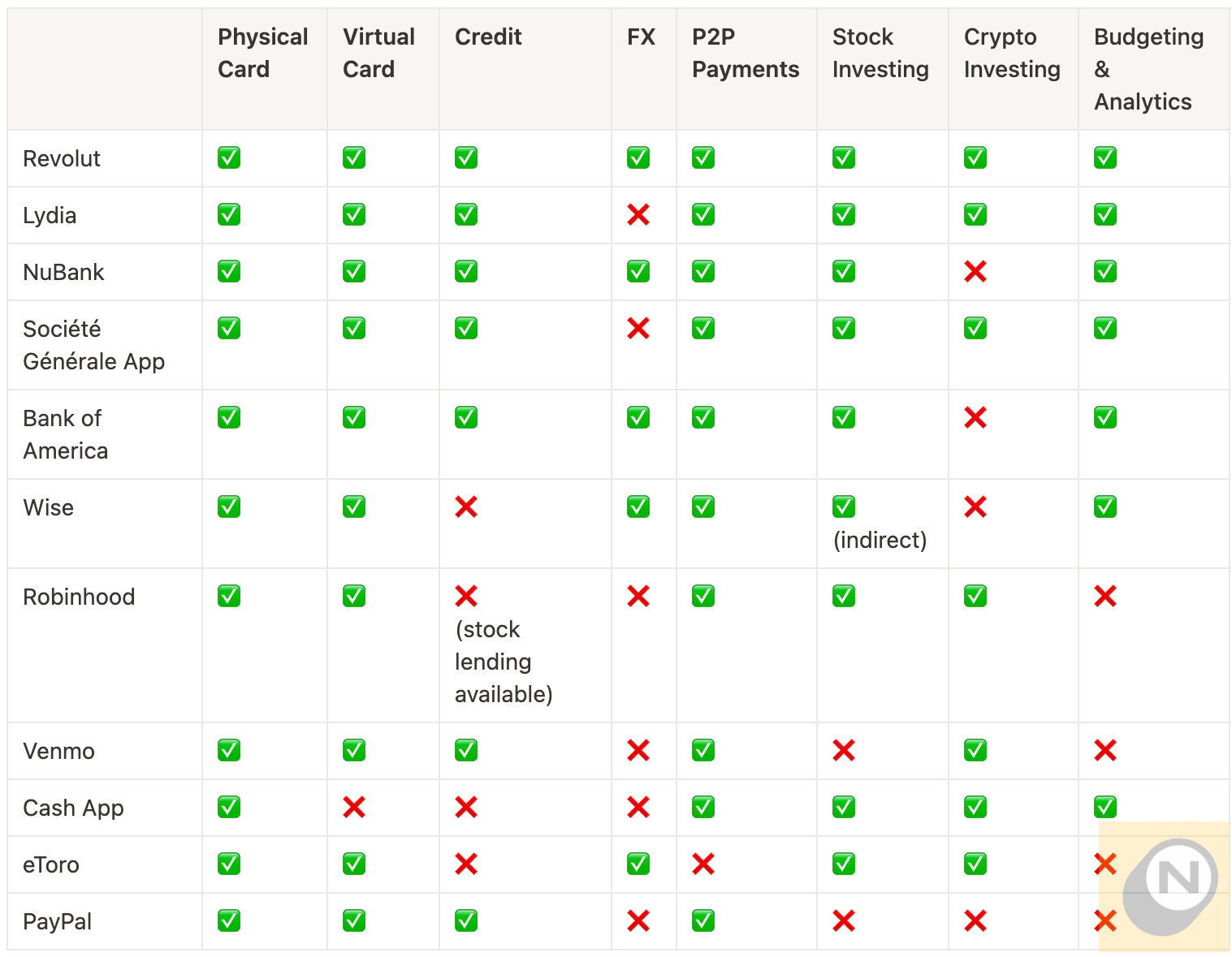 Have you ever noticed that your financial apps now almost all offer a card, a way to invest (stocks or crypto, or both), a budgeting tool/spending reports, FX, a way to pay friends, etc.?